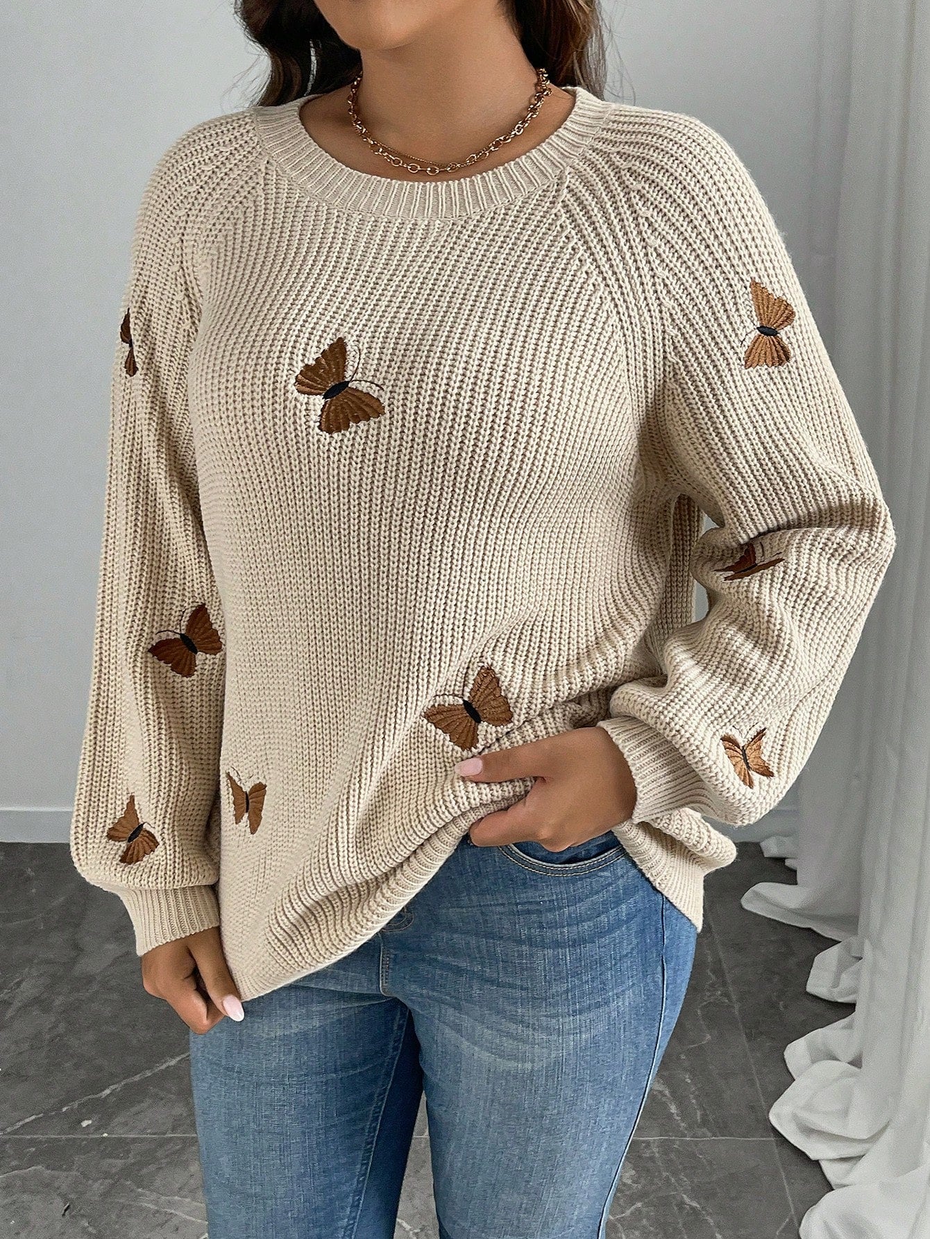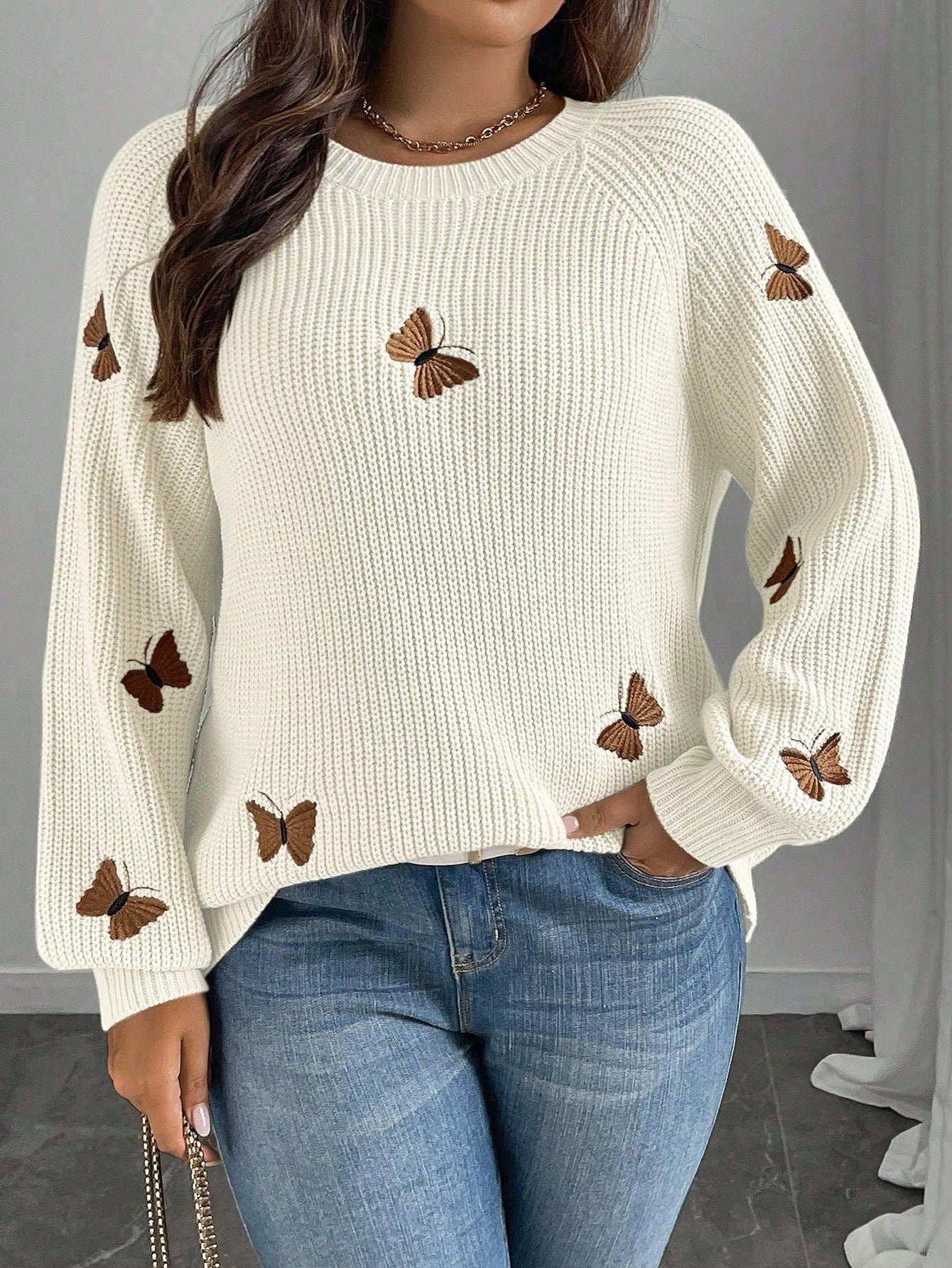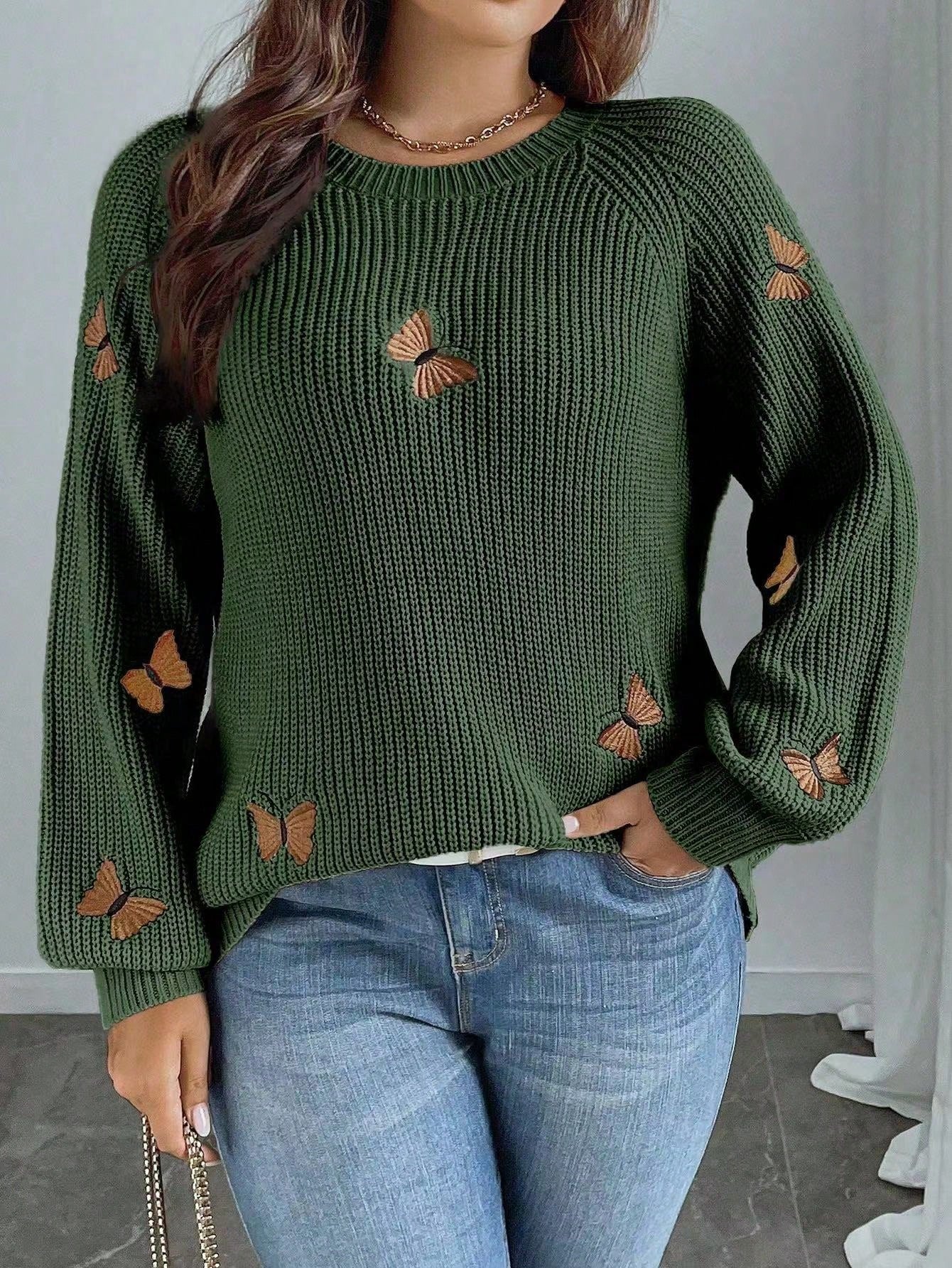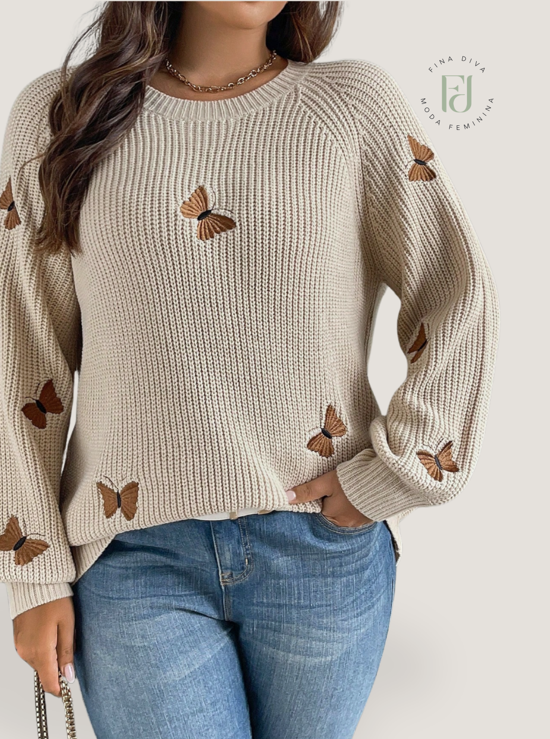 Suéter Feminino com Bordado de borboleta plus size Giorgia