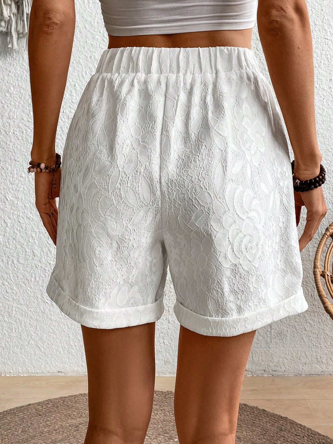 Bermuda feminina branca de algodão com detalhes bordados Hally