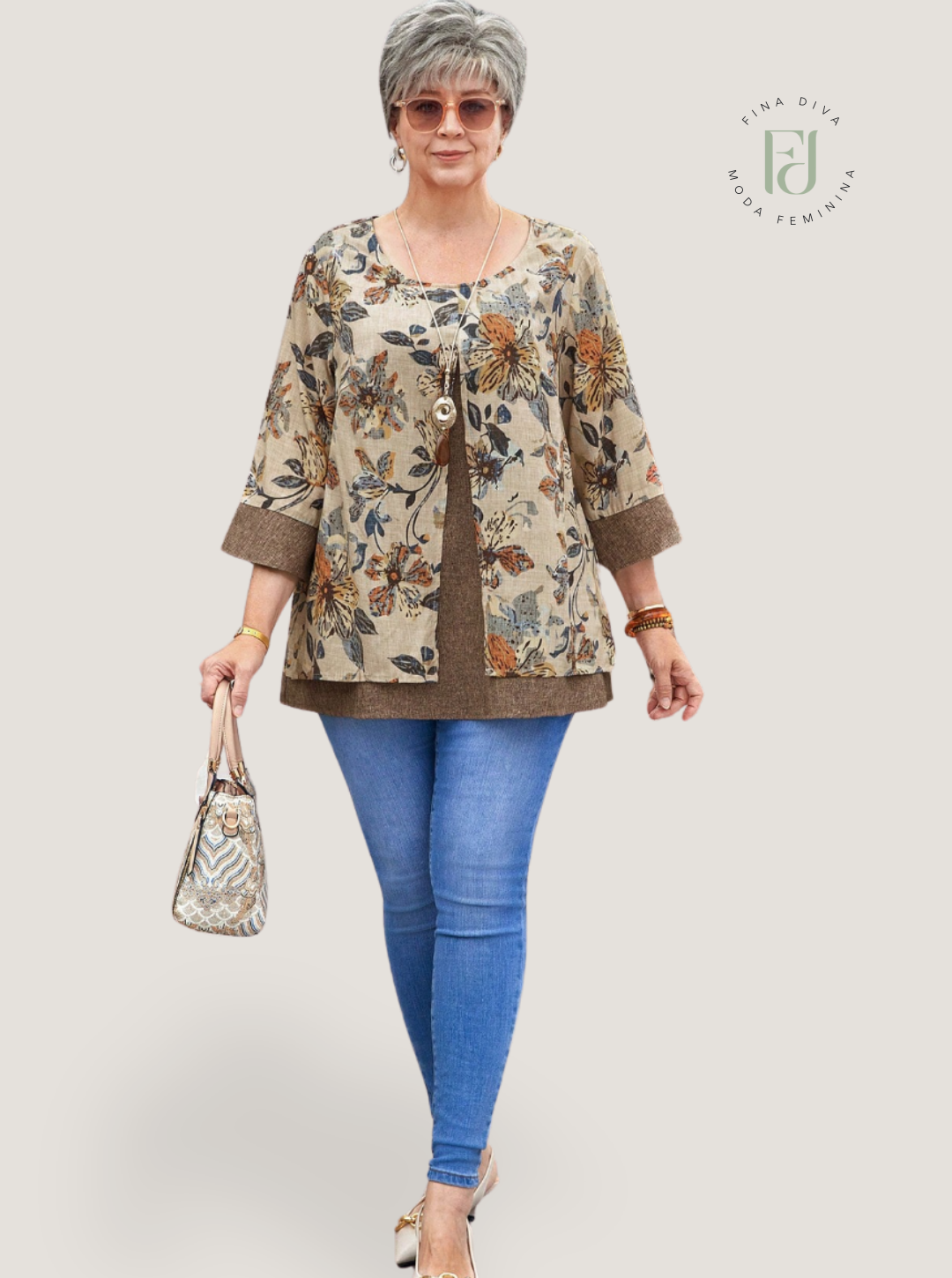 A blusa Aretha com manga 3/4 é perfeita para looks elegantes e descomplicados com toque artesanal.🤎