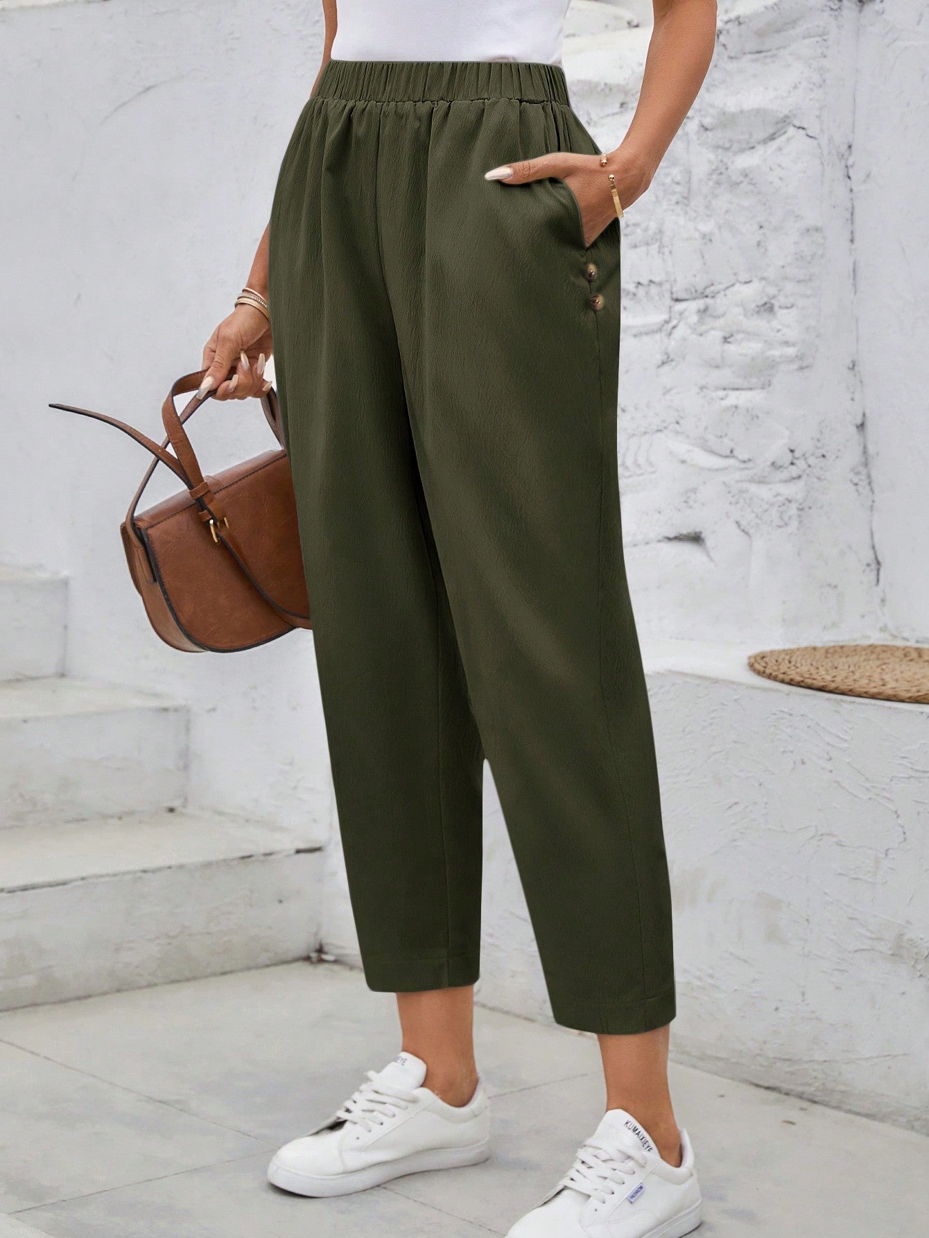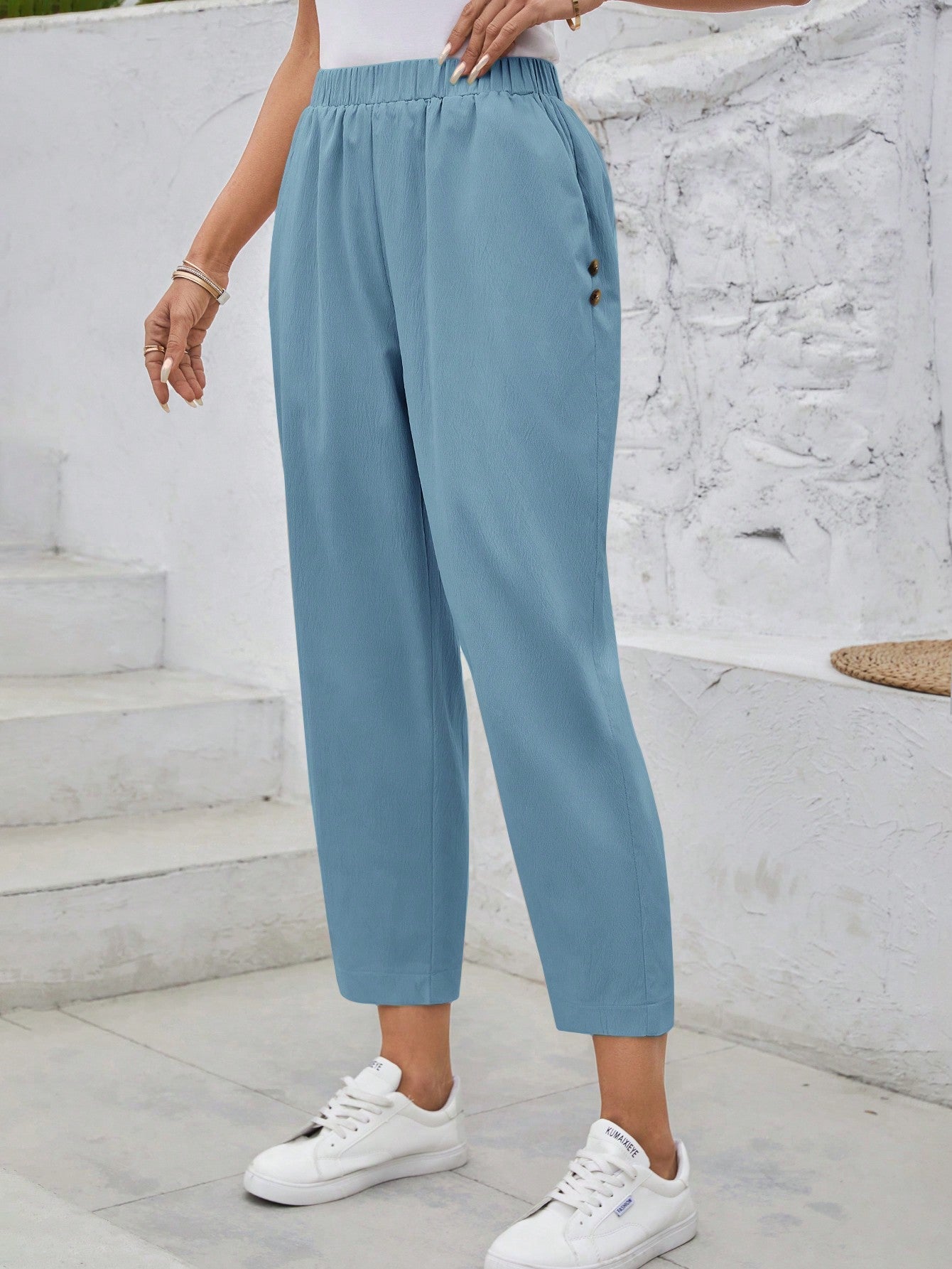 Calça Feminina com Elástico na Cintura e Bolsos Mariza