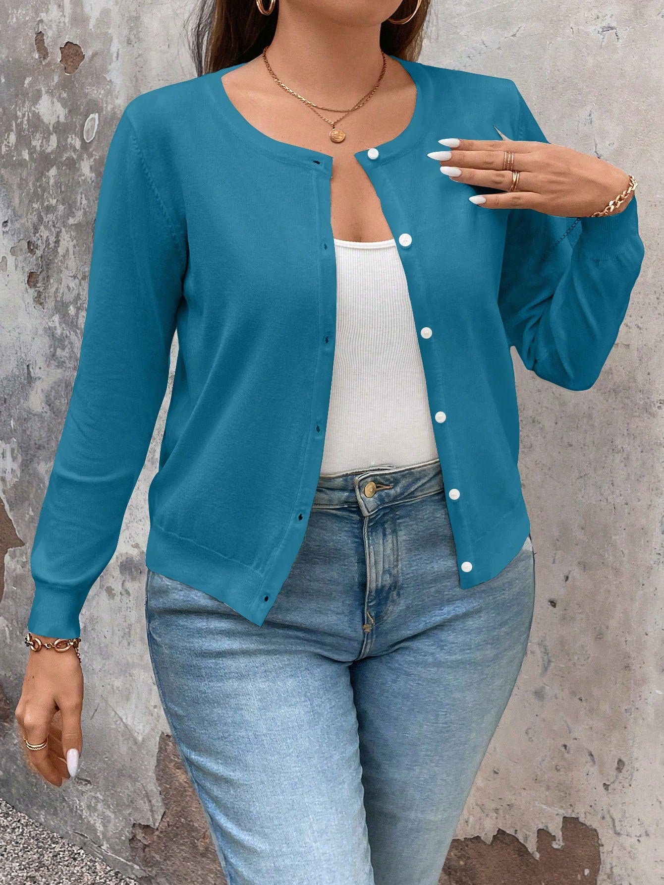 Cardigan de Manga Longa Botões na Frente - Gisele. Plus Size