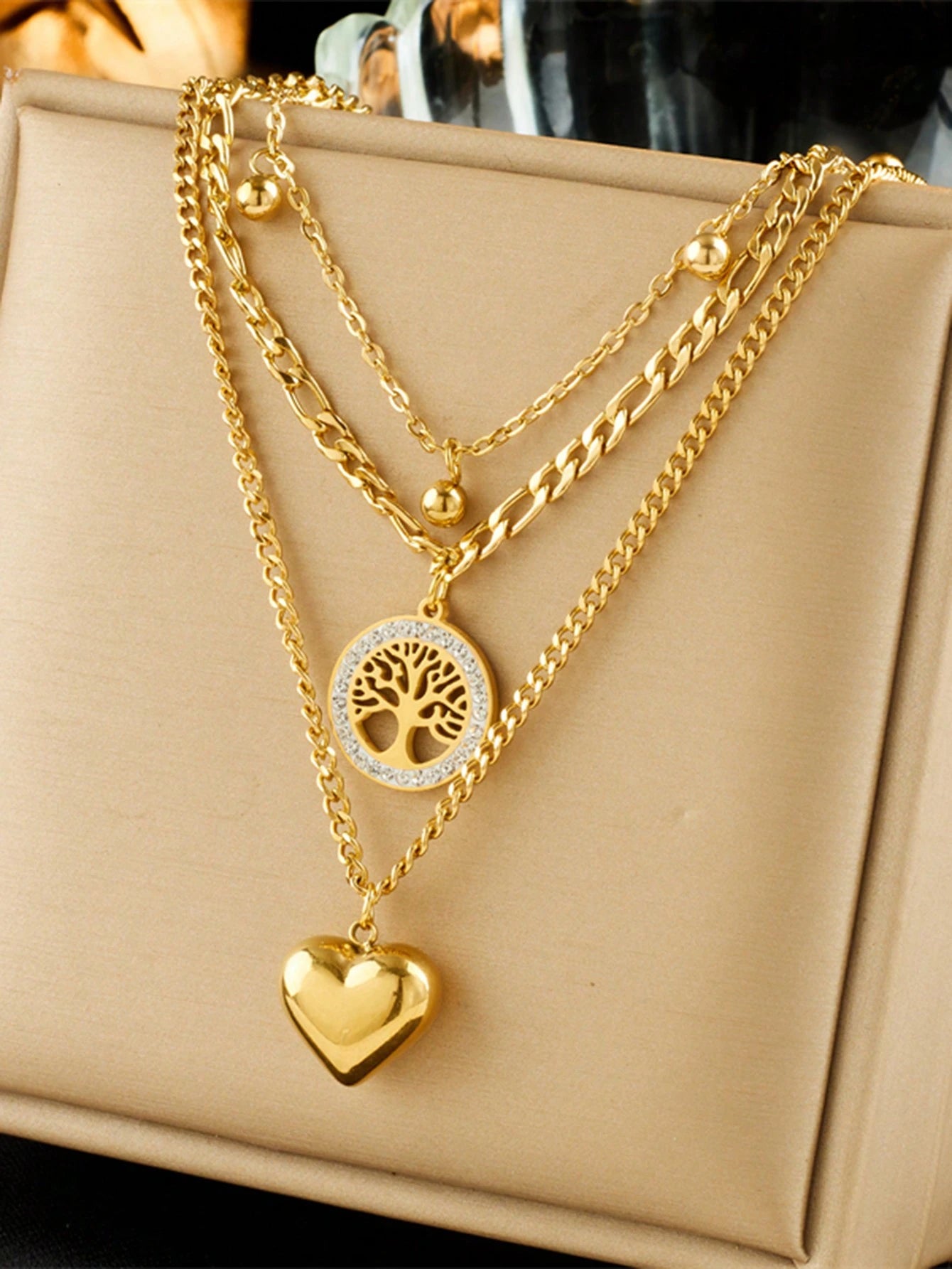 Colar Feminino Pingente com Design de Árvore da Vida e Coração de Aço Inoxidável - Désirée