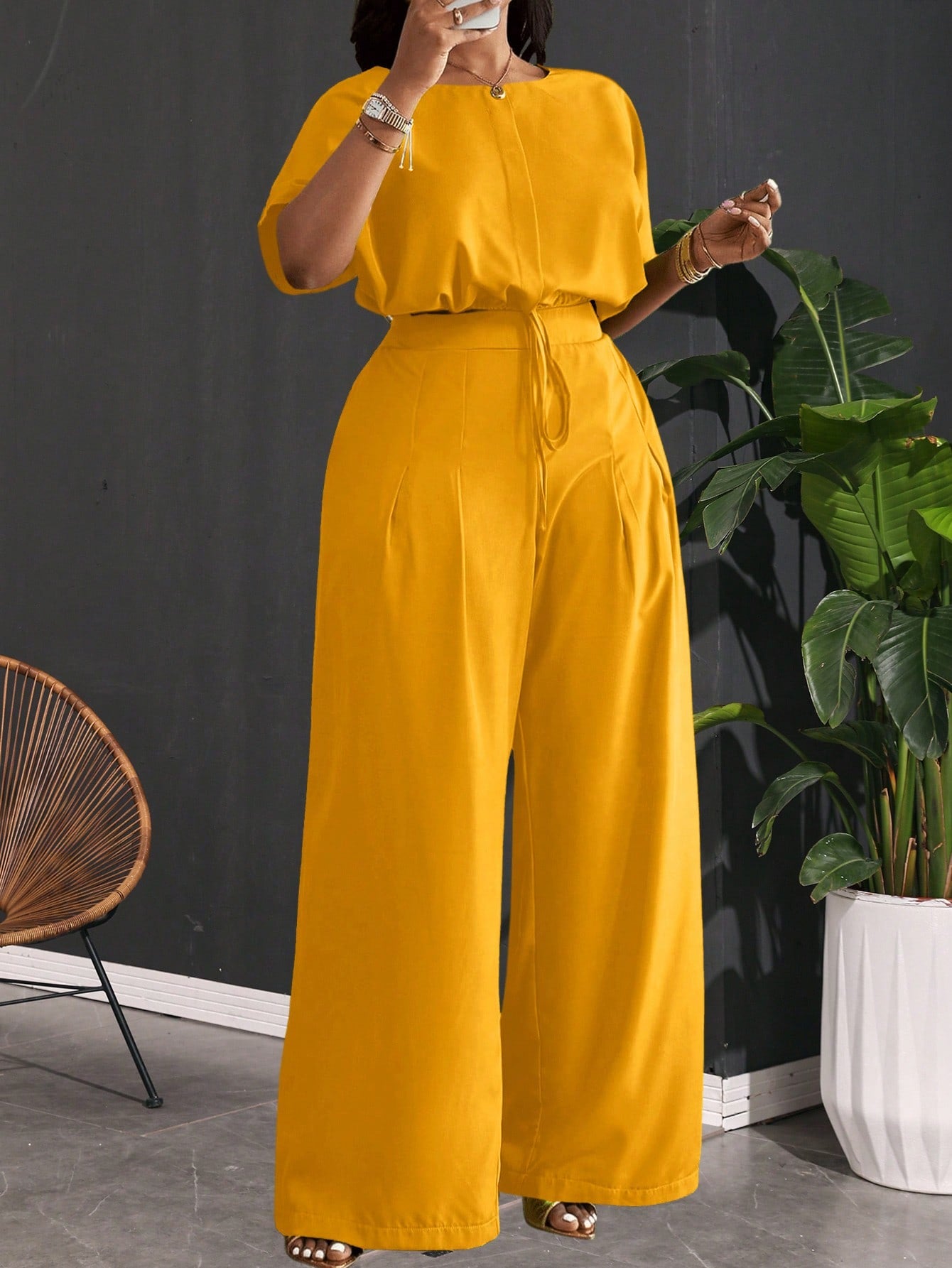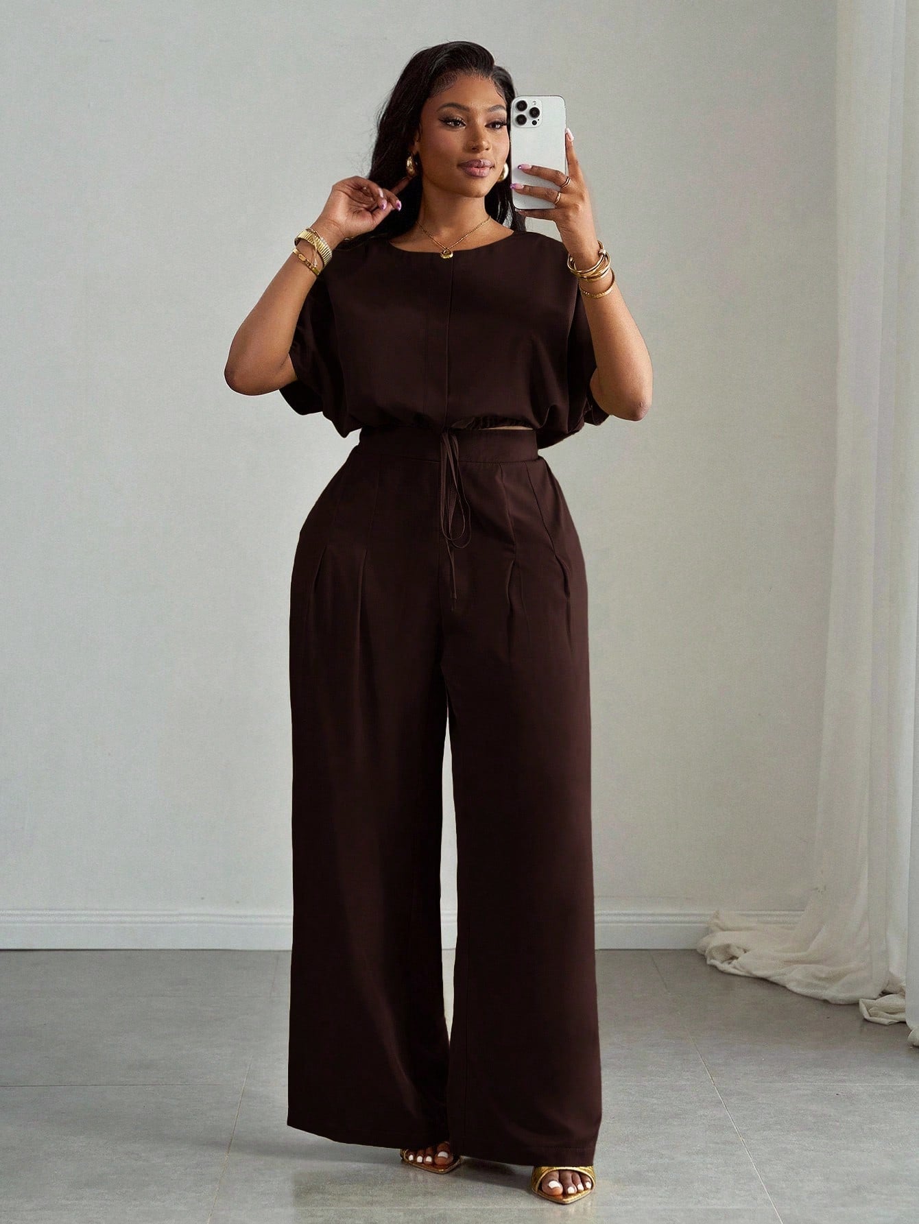 O conjunto Chloe valoriza a silhueta com sofisticação e traz um toque vibrante ao