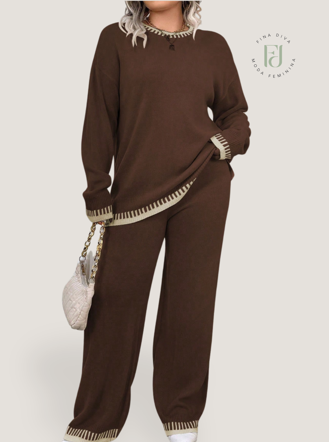 O conjunto Loren em tricô é perfeito para dias elegantes e aconchegantes.🖤