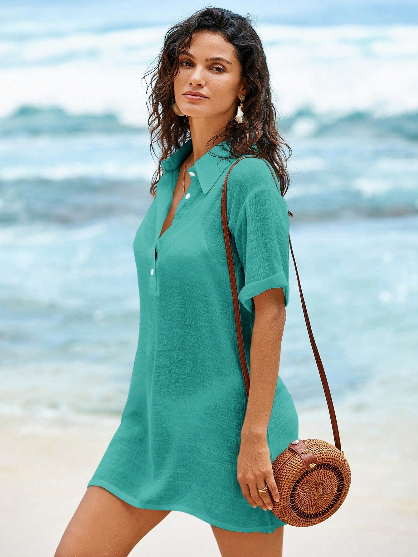 Saída de Praia Com Gola e Manga Curta - Grace