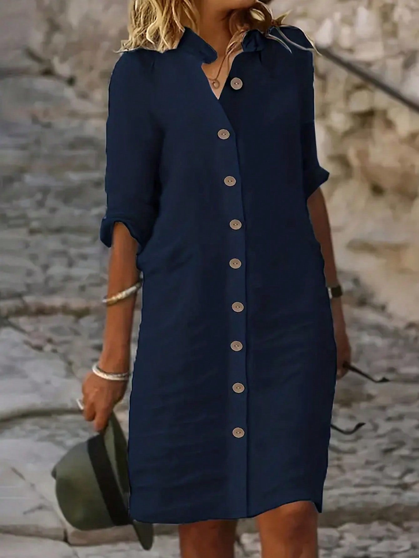 Vestido-Camisa Feminino com botões na frente - Leonor