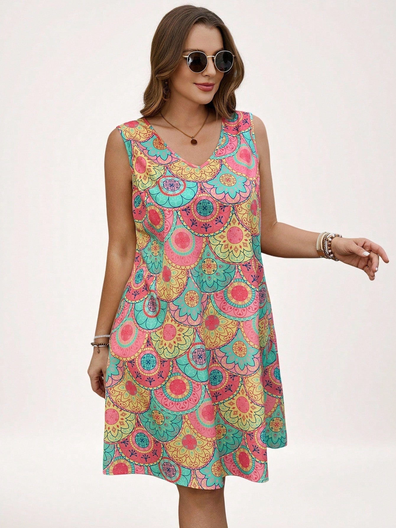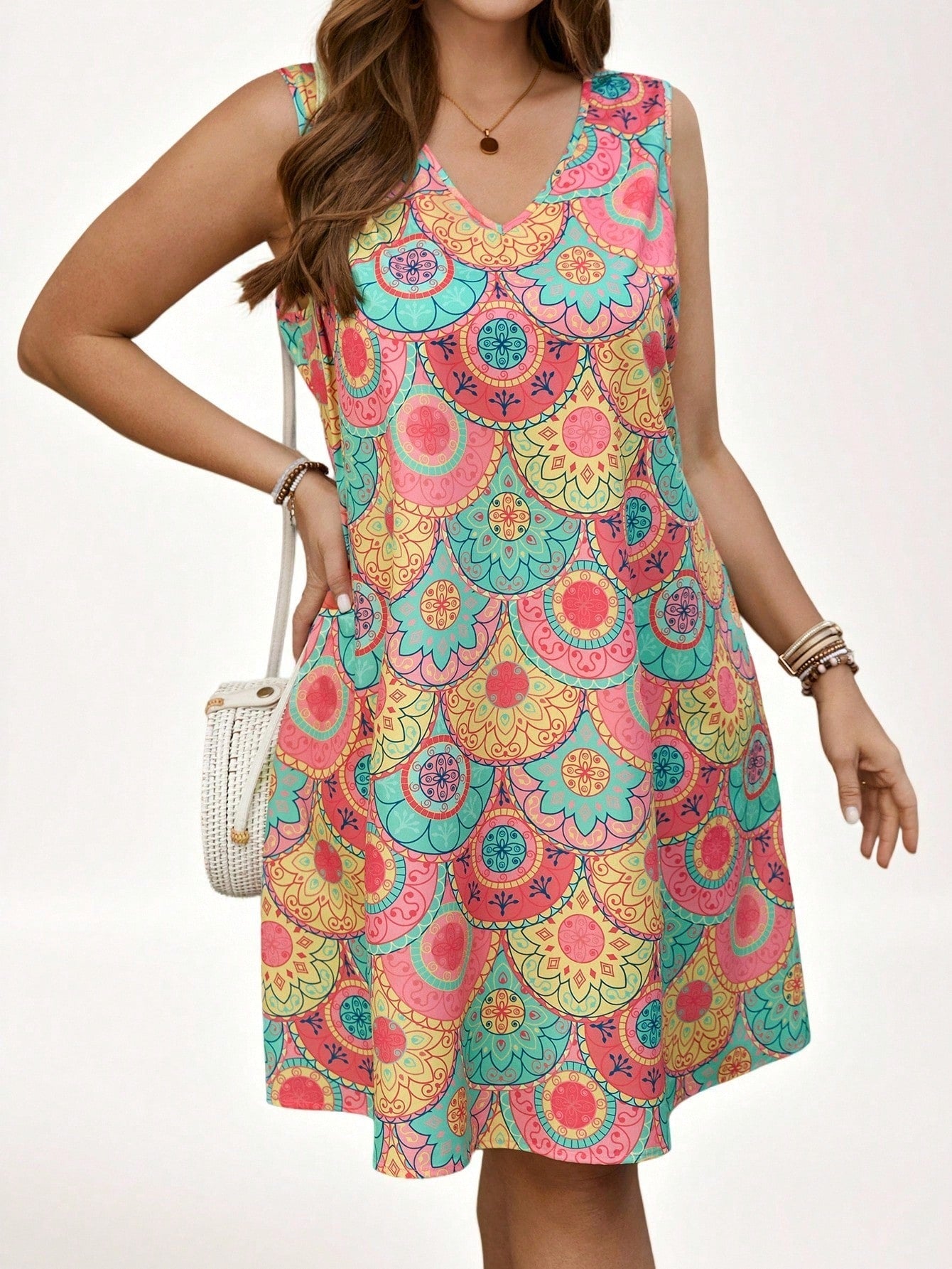 Vestido Feminino com gola V Lilibeth. Plus Size